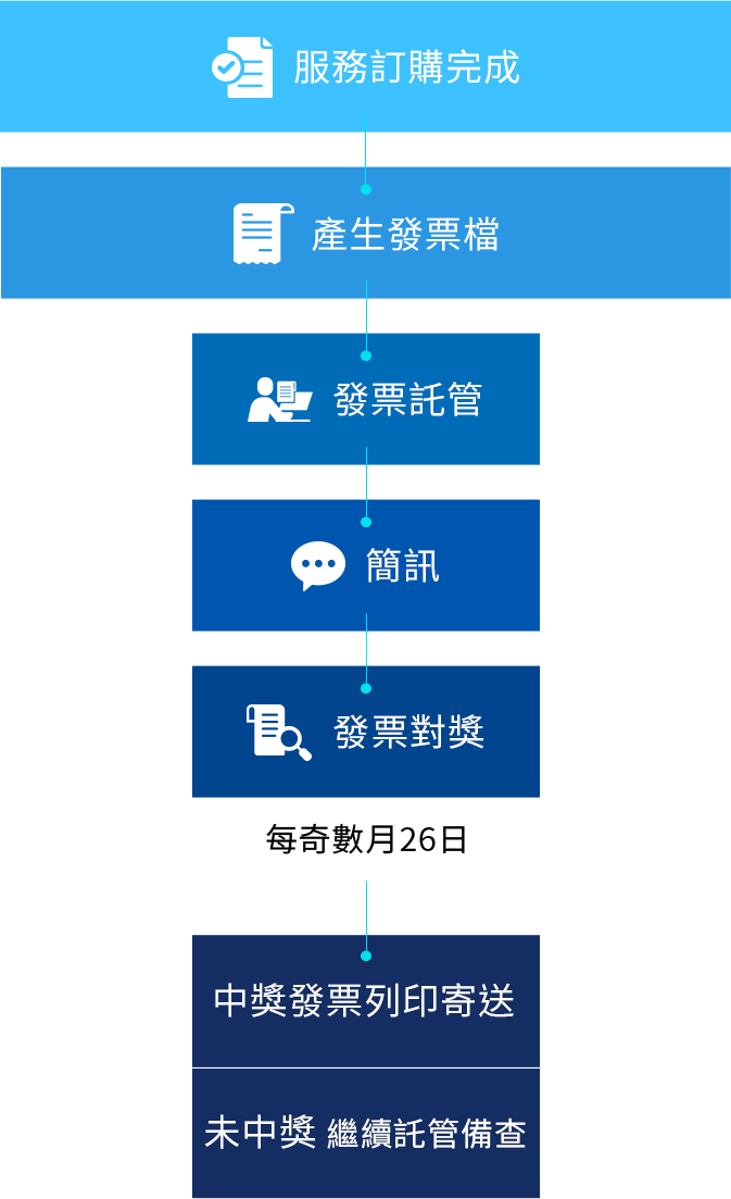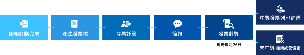 每逢單月26日將根據國稅局公佈之統一發票中獎號碼進行電腦對獎(已索取、已作廢發票除外),若有中獎: